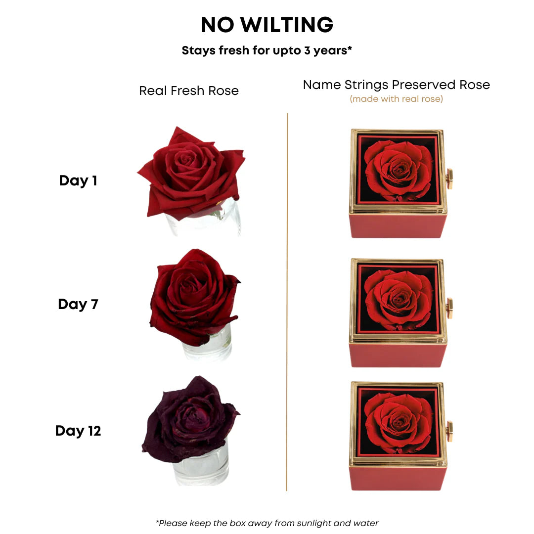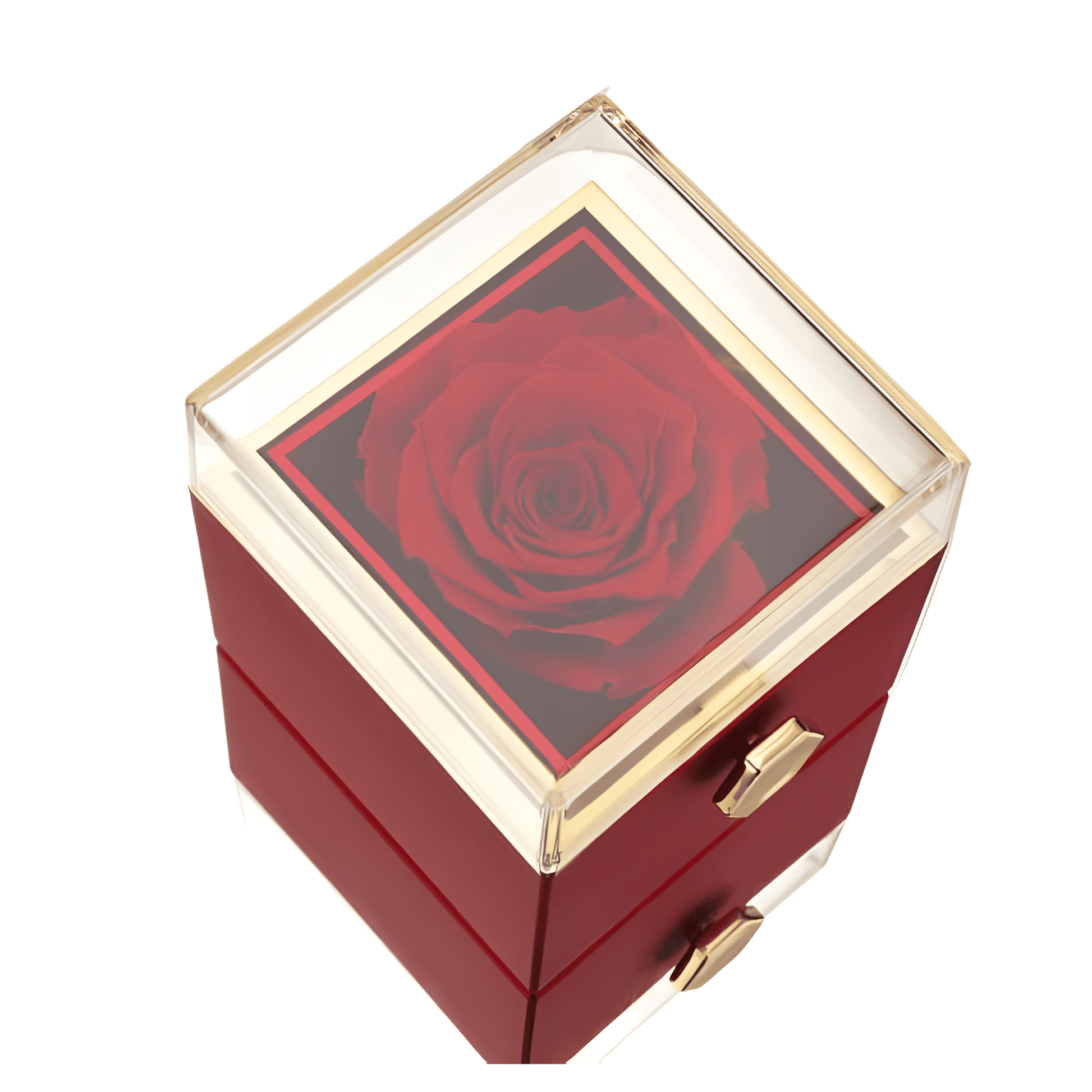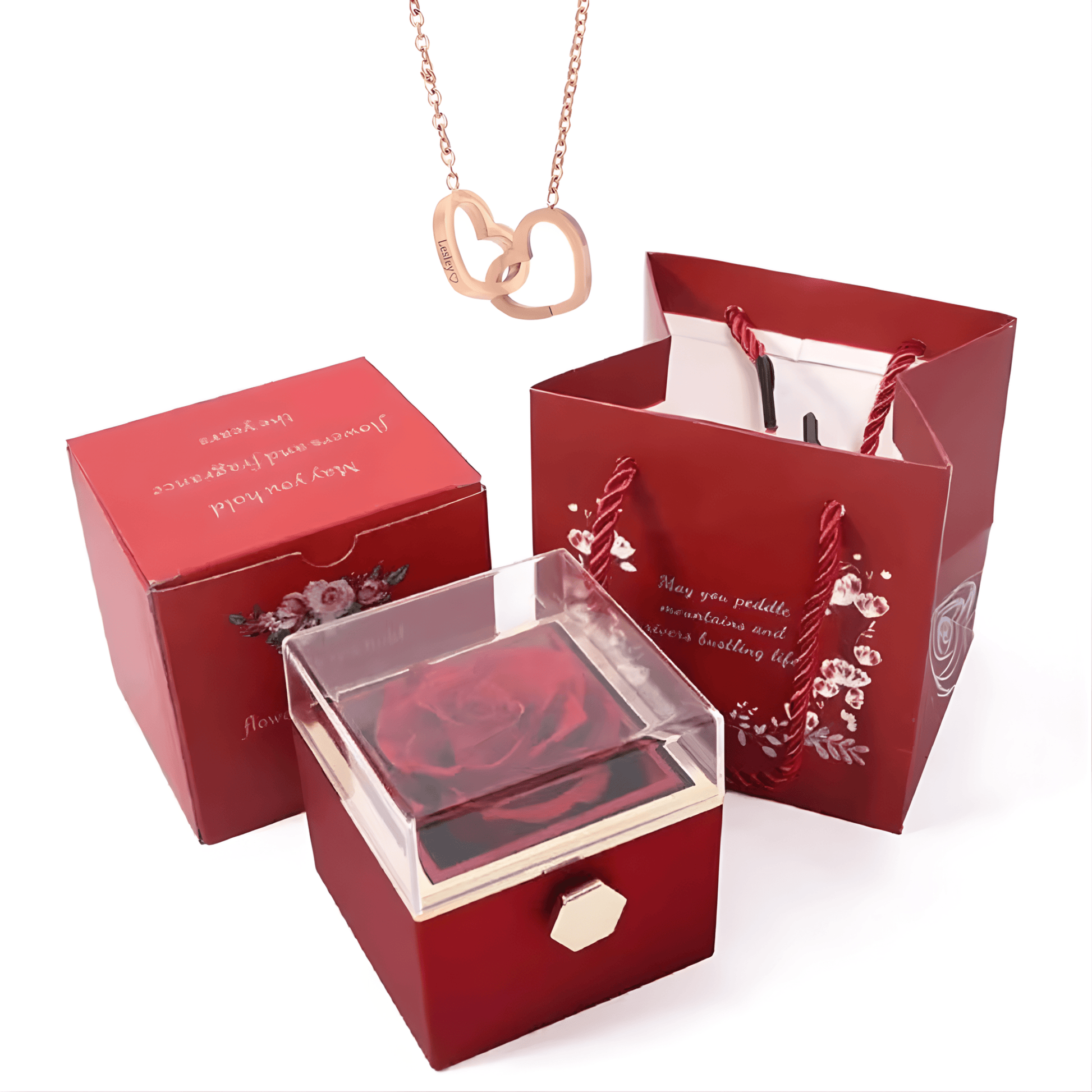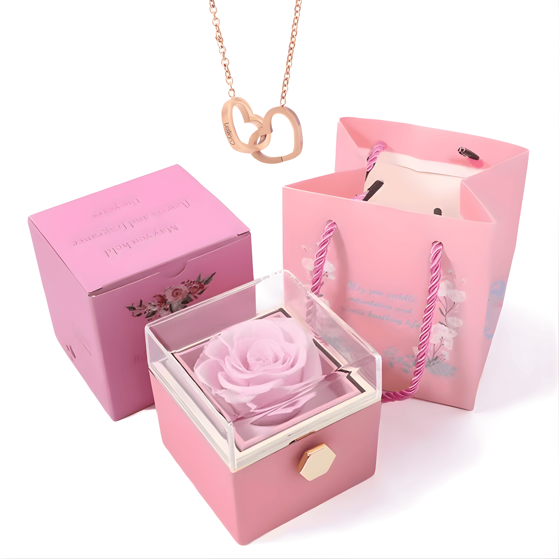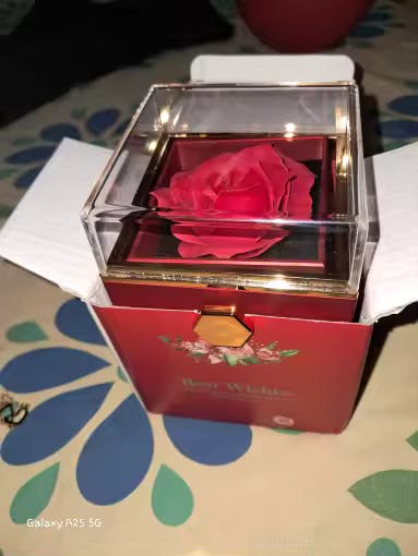 The rose is a real flower that has been specially preserved. With proper care (avoiding direct sunlight and water), it can last 3-5 years or more.
